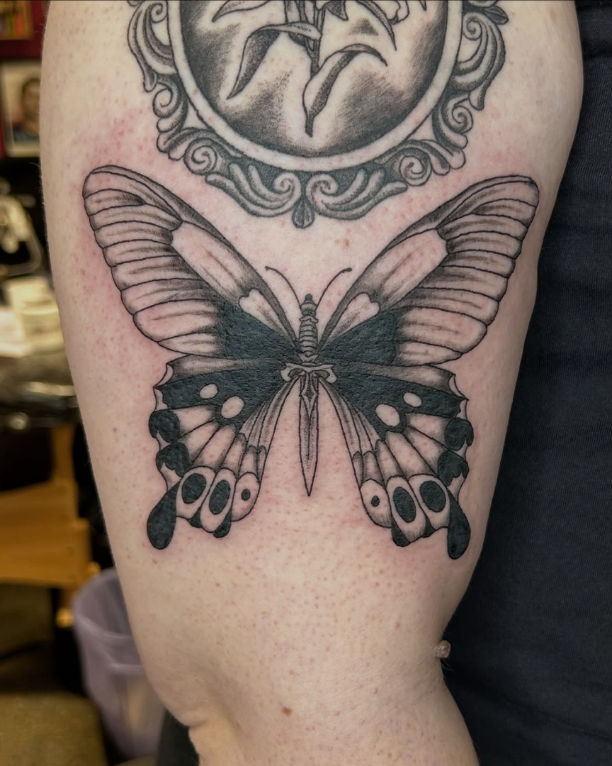 Kenny is our new junior tattoo artist. Originally from Hamilton they completed their apprenticeship and have relocated to Poneke. They have been tattooing for three years and want to expand their skills and style.