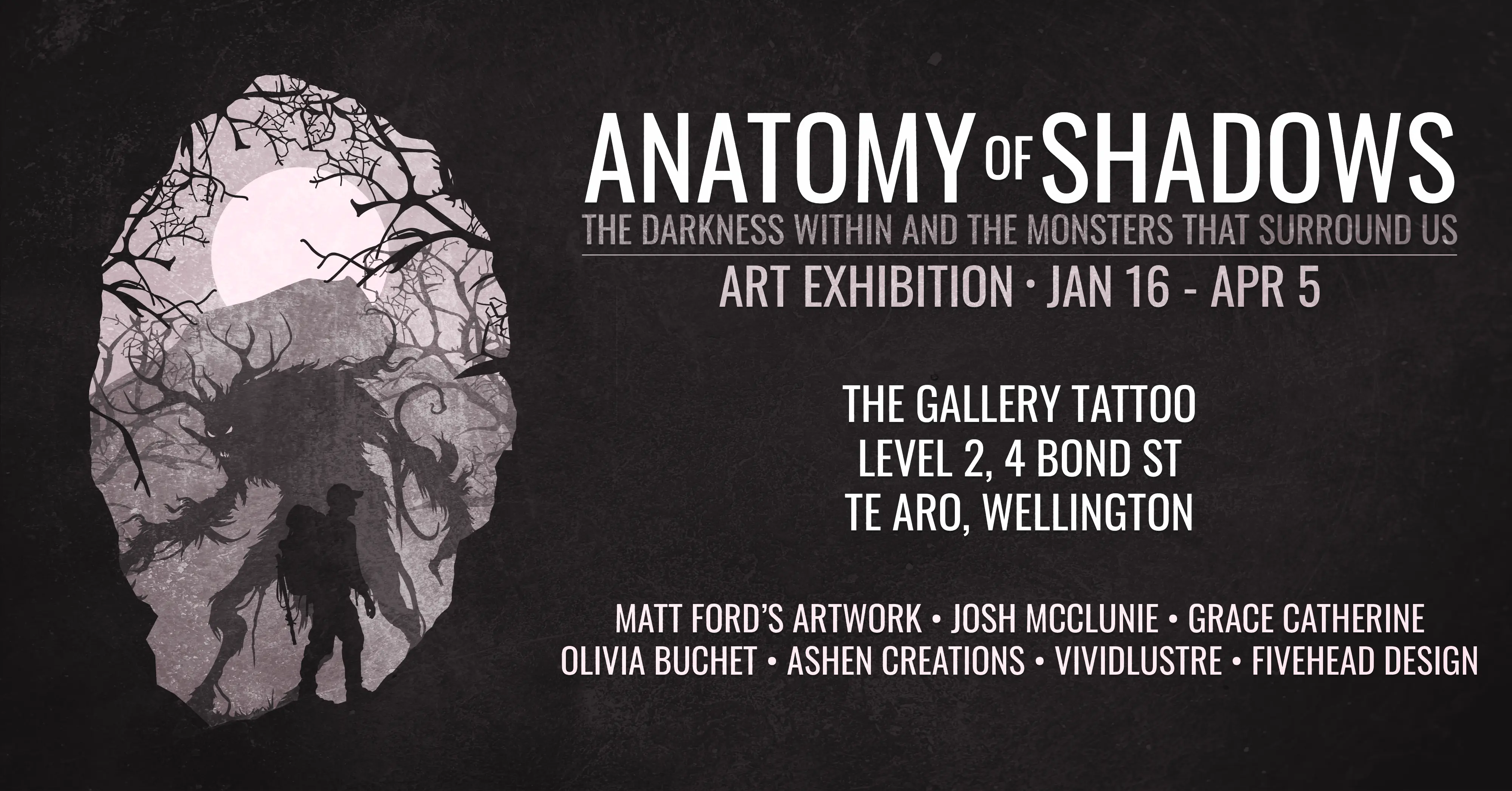 This exhibition explores the darkness within and the monsters that surround us.